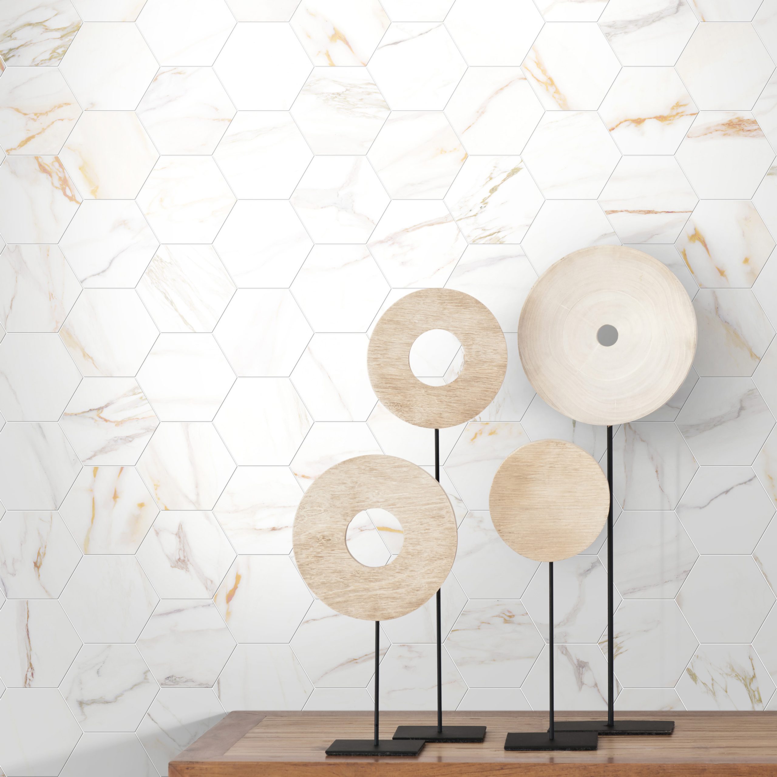 Il movimento delle venature ritorna per valorizzare ogni superficie: dal disegno geometrico del decoro Domum al sorprendente incrocio di colori di Basket, anche in ogni singola tessera del mosaico si ritrova la profondità delle venature che arricchiscono ulteriormente il disegno floreale e l’arazzo ricreato in bianco e nero. Accanto a questi decori originali Cava presenta anche il tradizionale mosaico e decori dal design geometrico, Esagona e Ottagona per creare sempre nuovi movimenti.