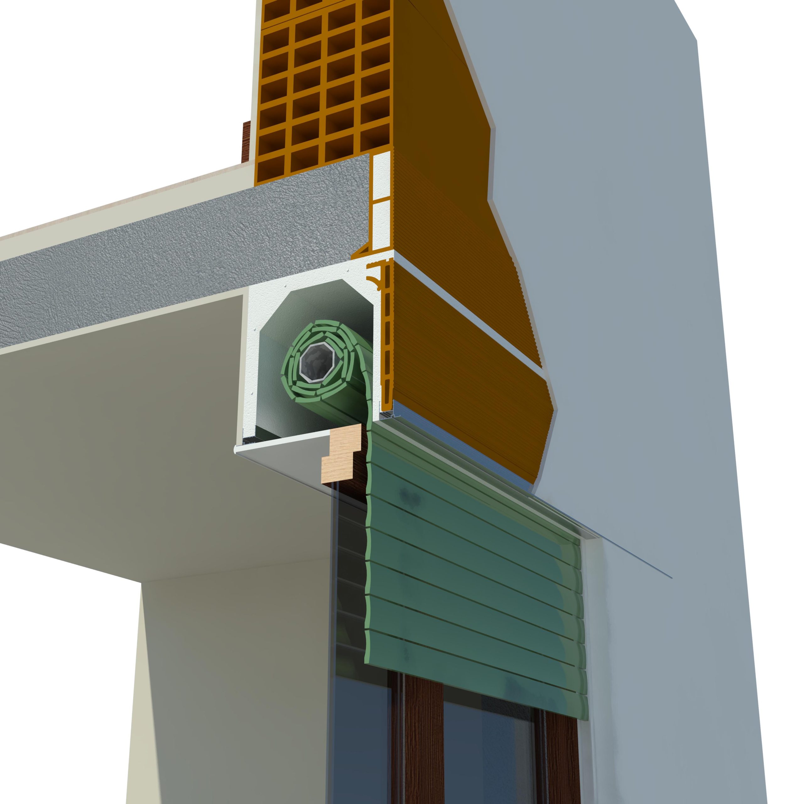 Soluzione di cassonetto a scomparsa per qualsiasi tipo di frangisole esterno.