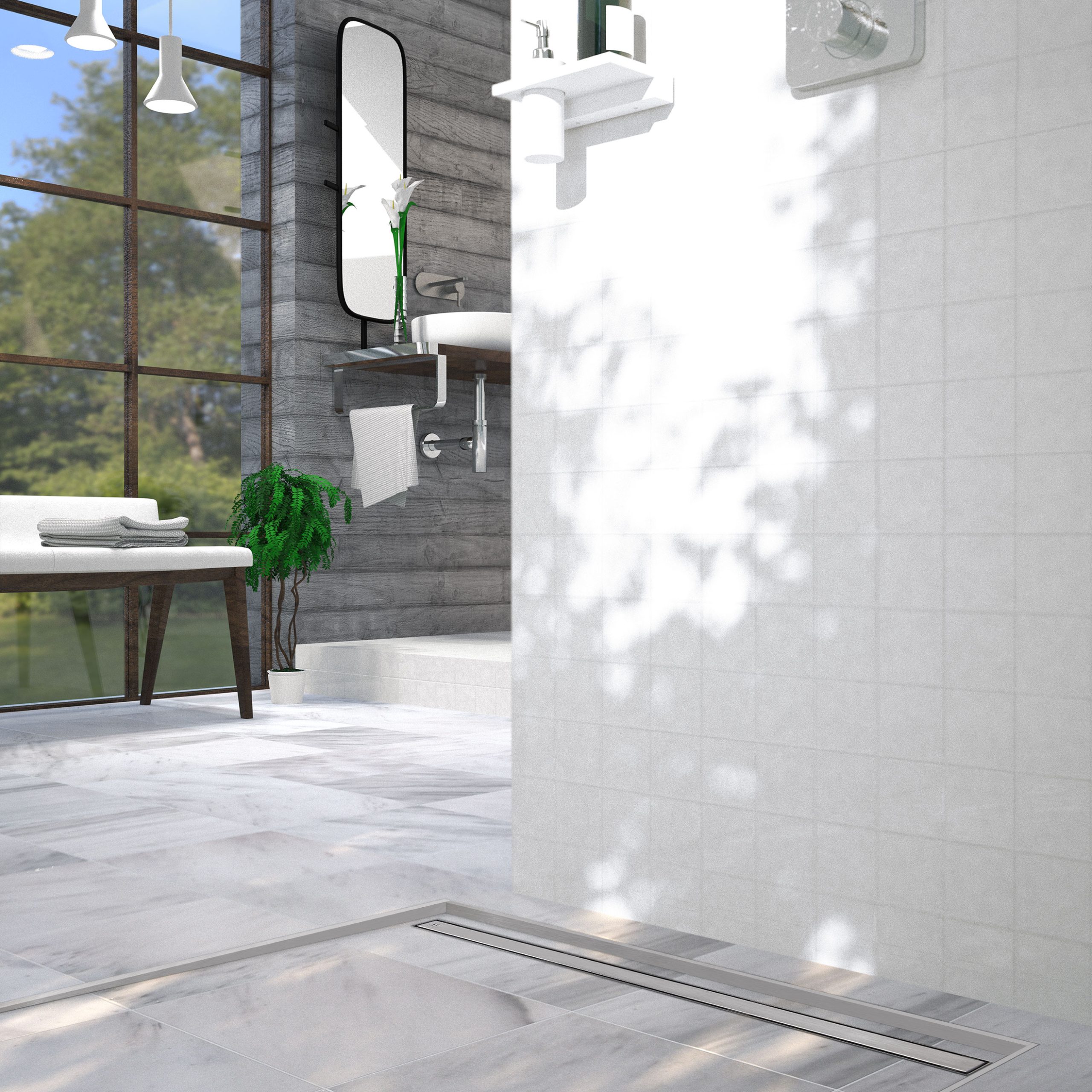 Canalina per docce a pavimento con griglia piastrellabile: