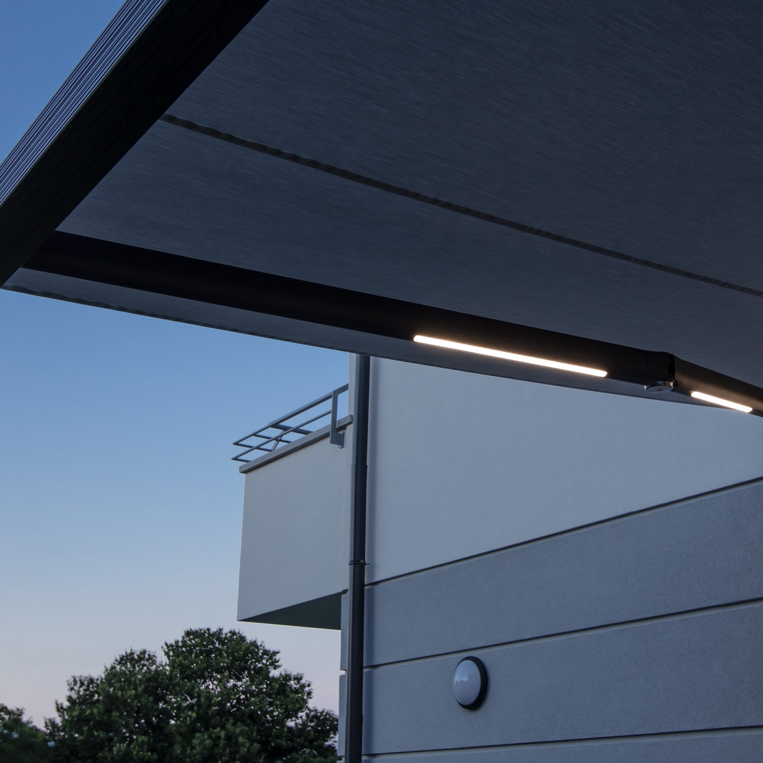 Pergola bioclimatica autoportante in alluminio dal design ricercato e innovativo. Gronda perimetrale da 20 x 20 cm con raccolta acqua integrata nei montanti di forma triangolare. Copertura a lamelle in alluminio da L 22 cm x H 4 cm orientabili da 0° a 140°, complete di guarnizioni e gronde scarico acqua laterale.Dimensioni massime realizzabili in modulo unico L 4,50 x S 5,00 m con quattro montanti perimetrali triangolari da 20 x 20 cm. Funzionamento esclusivo a motore lineare a bassa tensione. La struttura offre optional aggiuntivi, come luci LED o teli a drappeggio, in grado di creare sinergie tra il nuovo ambiente e quello circostante, che generano nuove soluzioni ogni volta originali e personalizzate. I profili portanti consentono l’applicazione di vetrate scorrevoli.