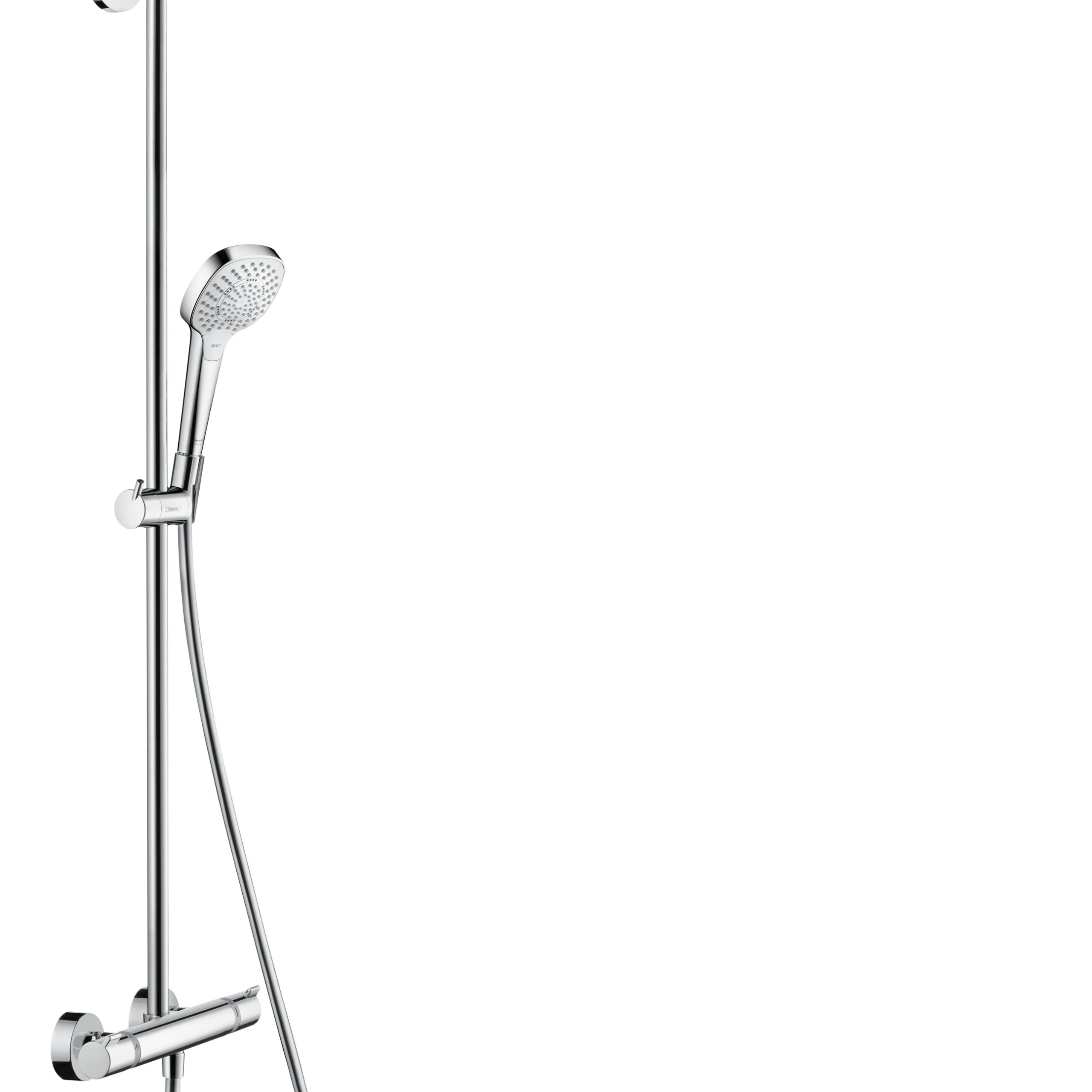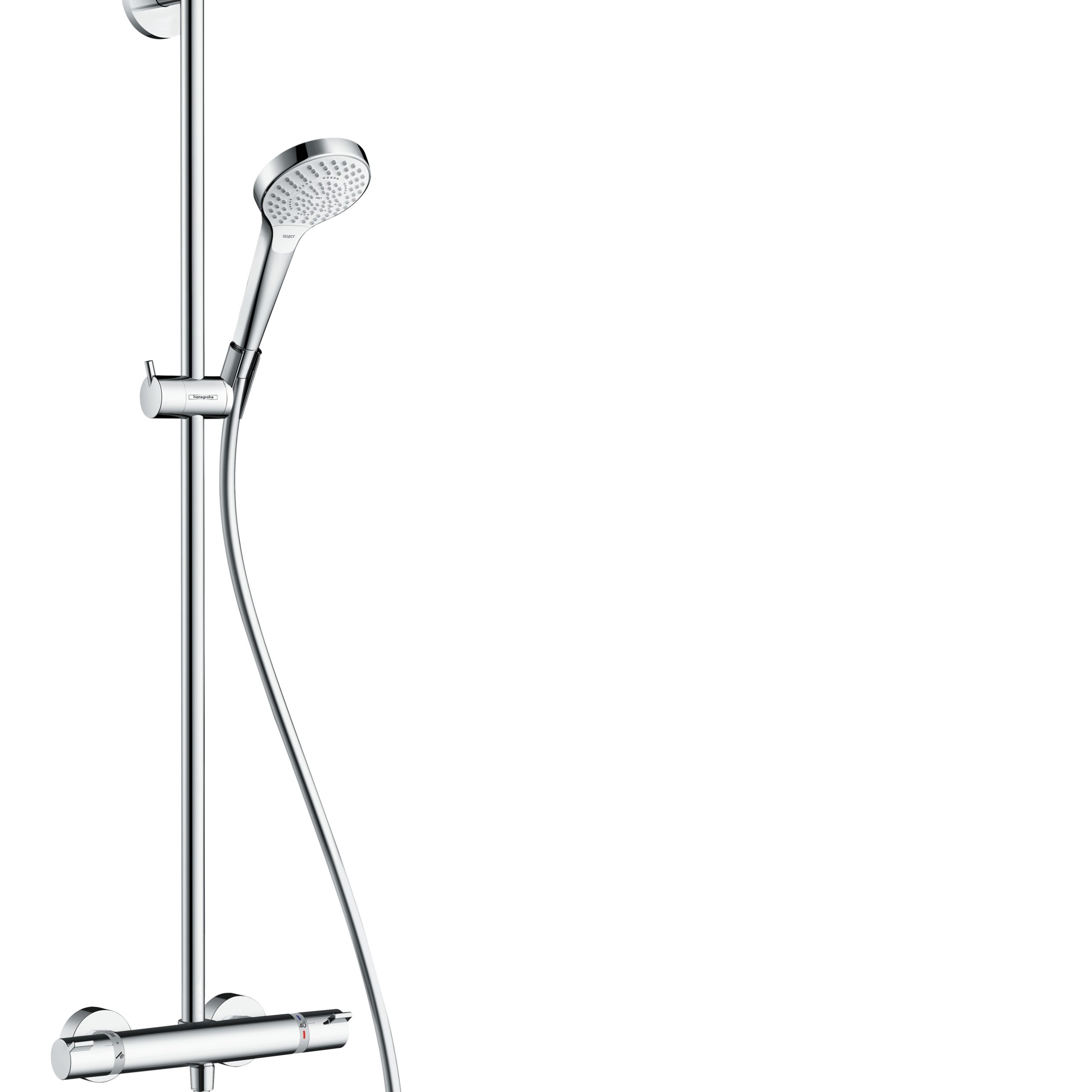 Nel mondo Hansgrohe dei sistemi doccia si trova la soluzione giusta per ogni cliente: la Showerpipe Croma Select 180 2jet è di una semplicità straordinaria. In questo sistema, doccetta, soffione e termostatico sono riuniti in un unico prodotto.