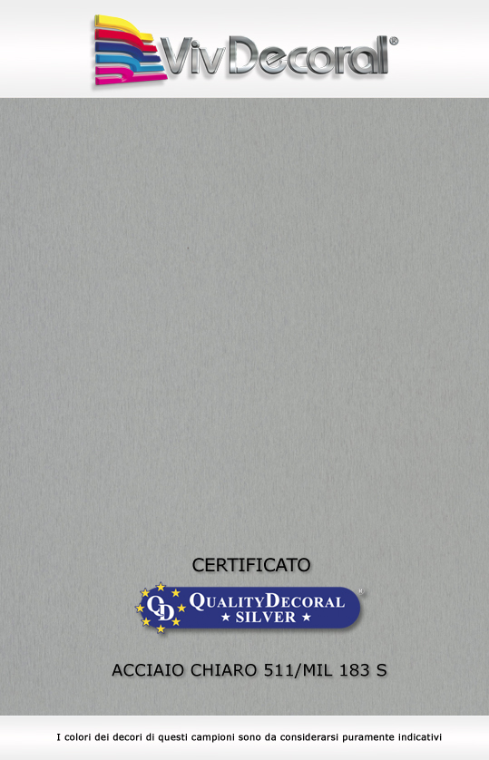 Le finiture certificate QUALITYDECORAL SILVER® sono ottenute mediante sublimazione con l’impiego di specifici prodotti vernicianti e film sublimatici realizzati da Decoral System®.