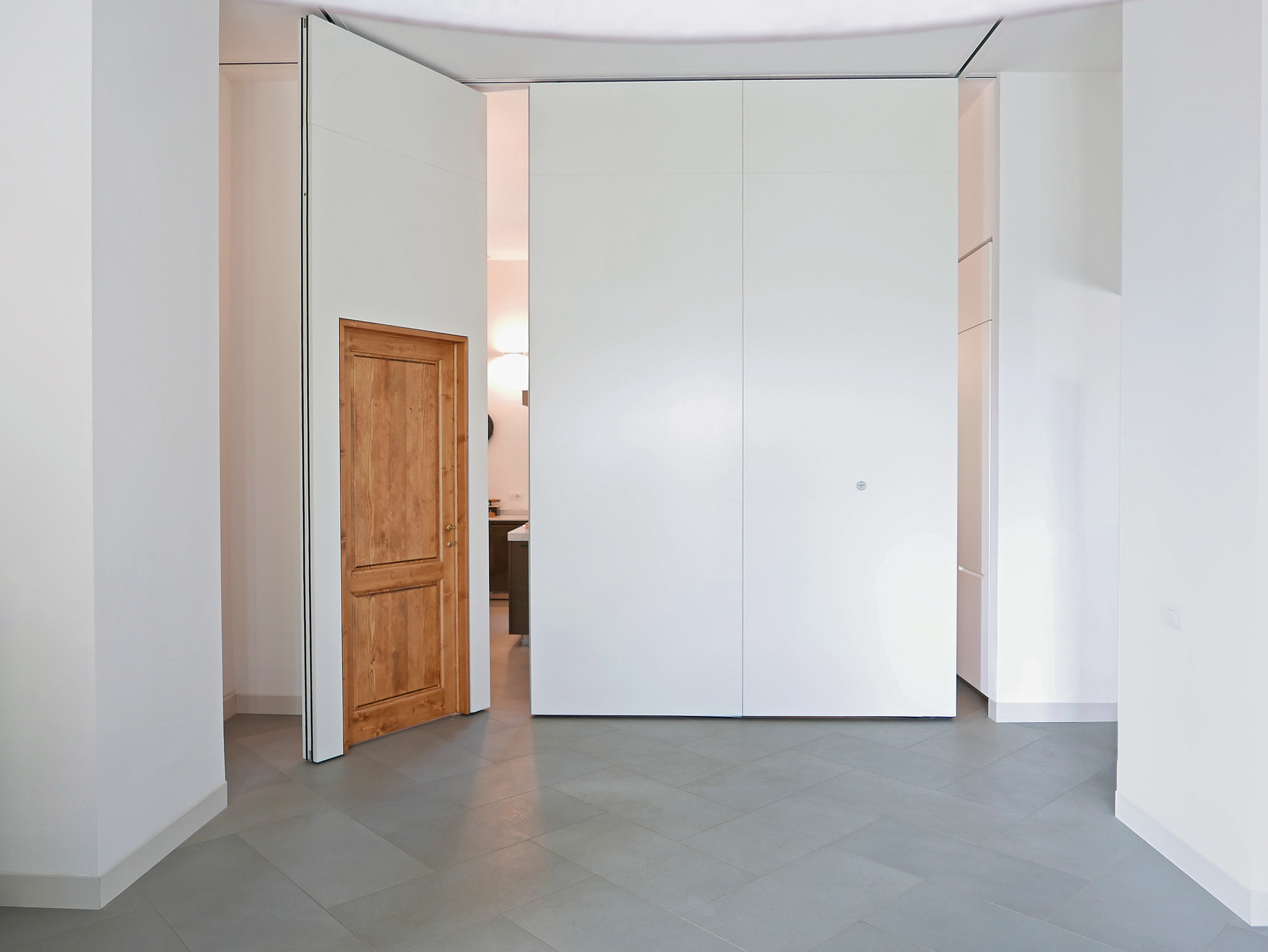 Una soluzione totalmente innovativa che risponde agli stili di vita contemporanei: Anaunia inventa la parete manovrabile residenziale per l’abitare domestico. Lo spazio unitario e compatto dell’appartamento diventa duttile grazie al sistema delle pareti manovrabili che permette configurazioni diverse del vivere. Uno strumento in più a disposizione di architetti e interior designer per progettare, con intelligenza e creatività, soluzioni flessibili dello spazio, vero lusso della contemporaneità.