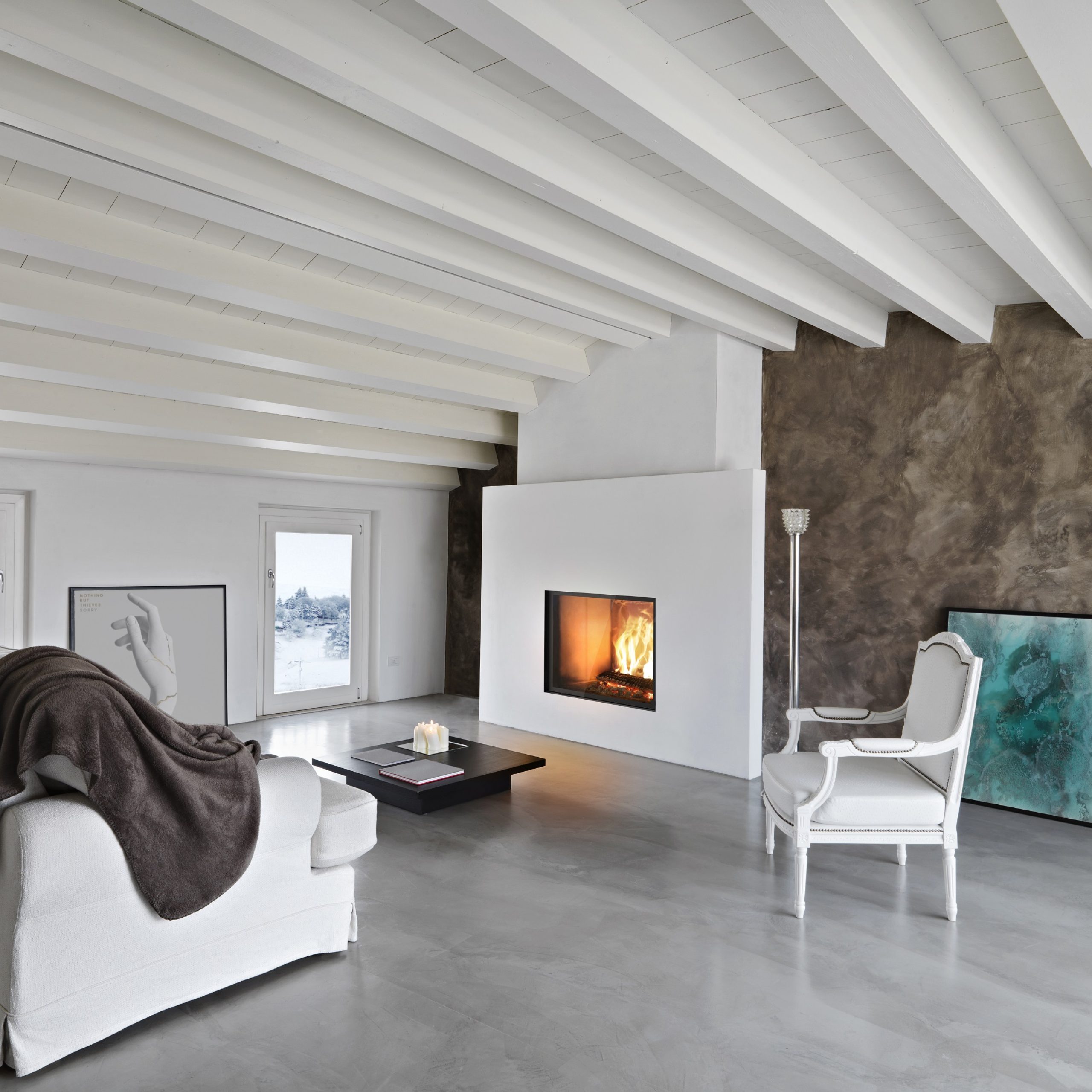 La rifinitura esterna è disponibile in pietra ollare sabbiata o acciaio in colorazioni bianco o nero. Con il funzionamento a legna puoi scegliere anche il funzionamento solo per irraggiamento.