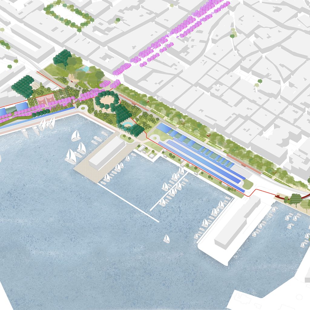 Il progetto della promenade fa parte di un masterplan più ampio, che include un Transit Hub intermodale presso la stazione ferroviaria e una passerella di collegamento da Piazza Ingrao al porto vecchio, rinnovato nelle sue strutture primarie.